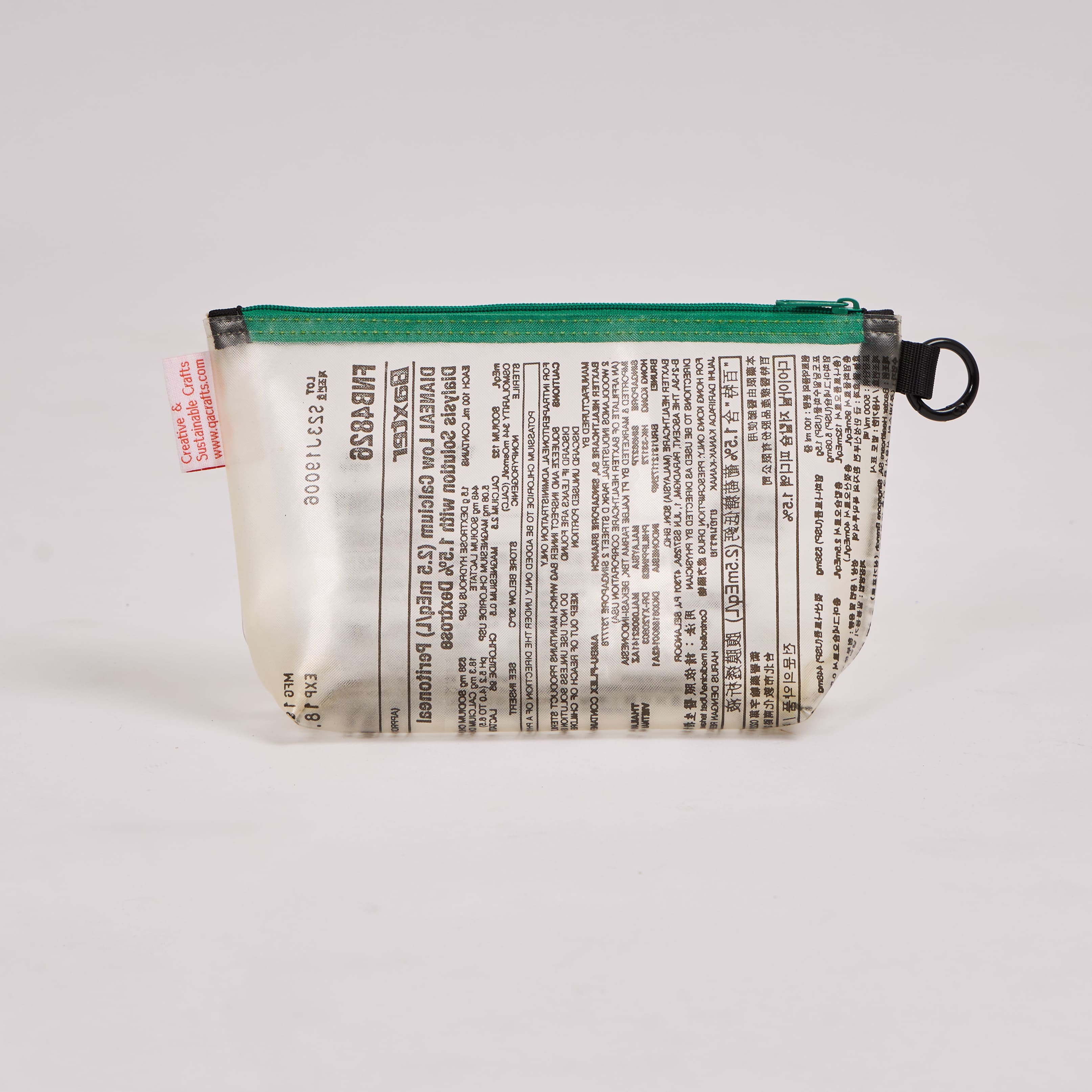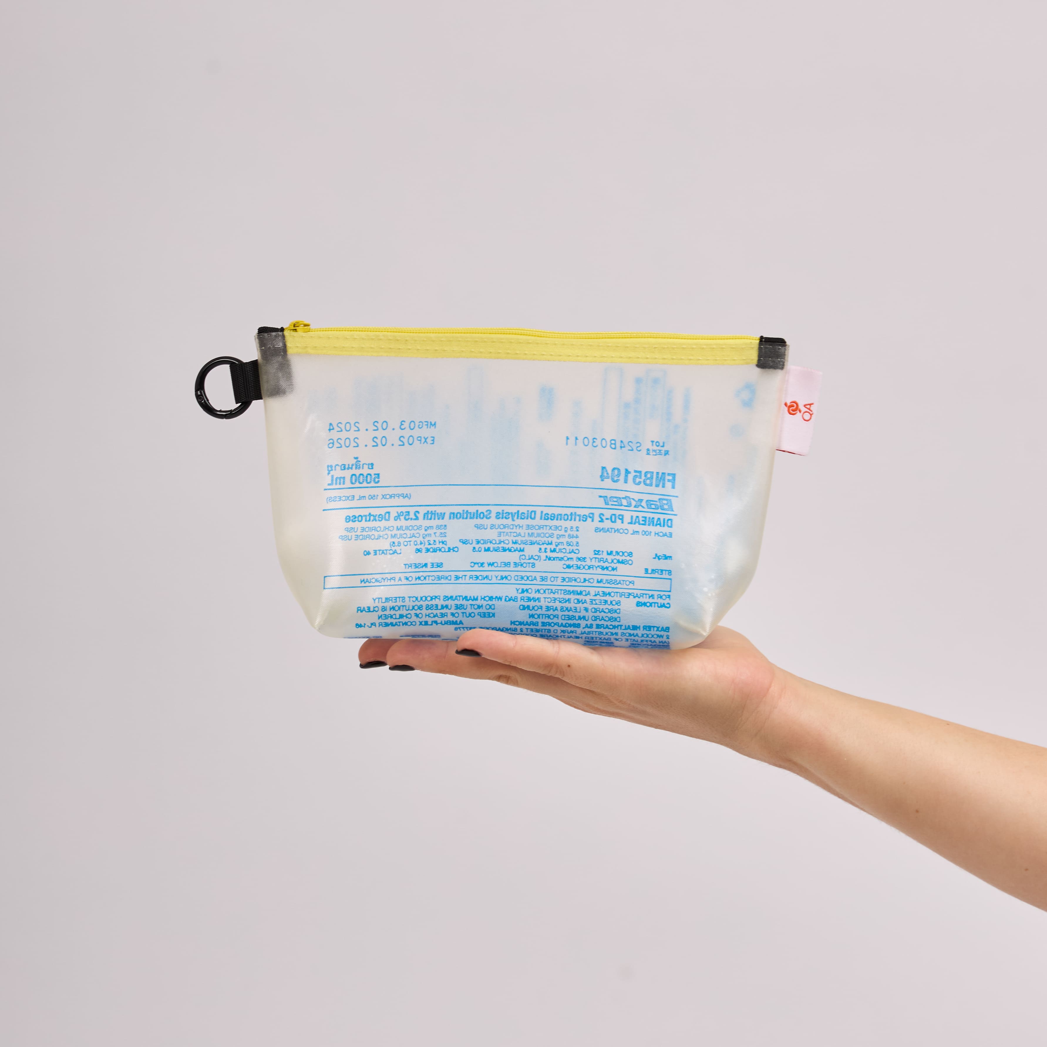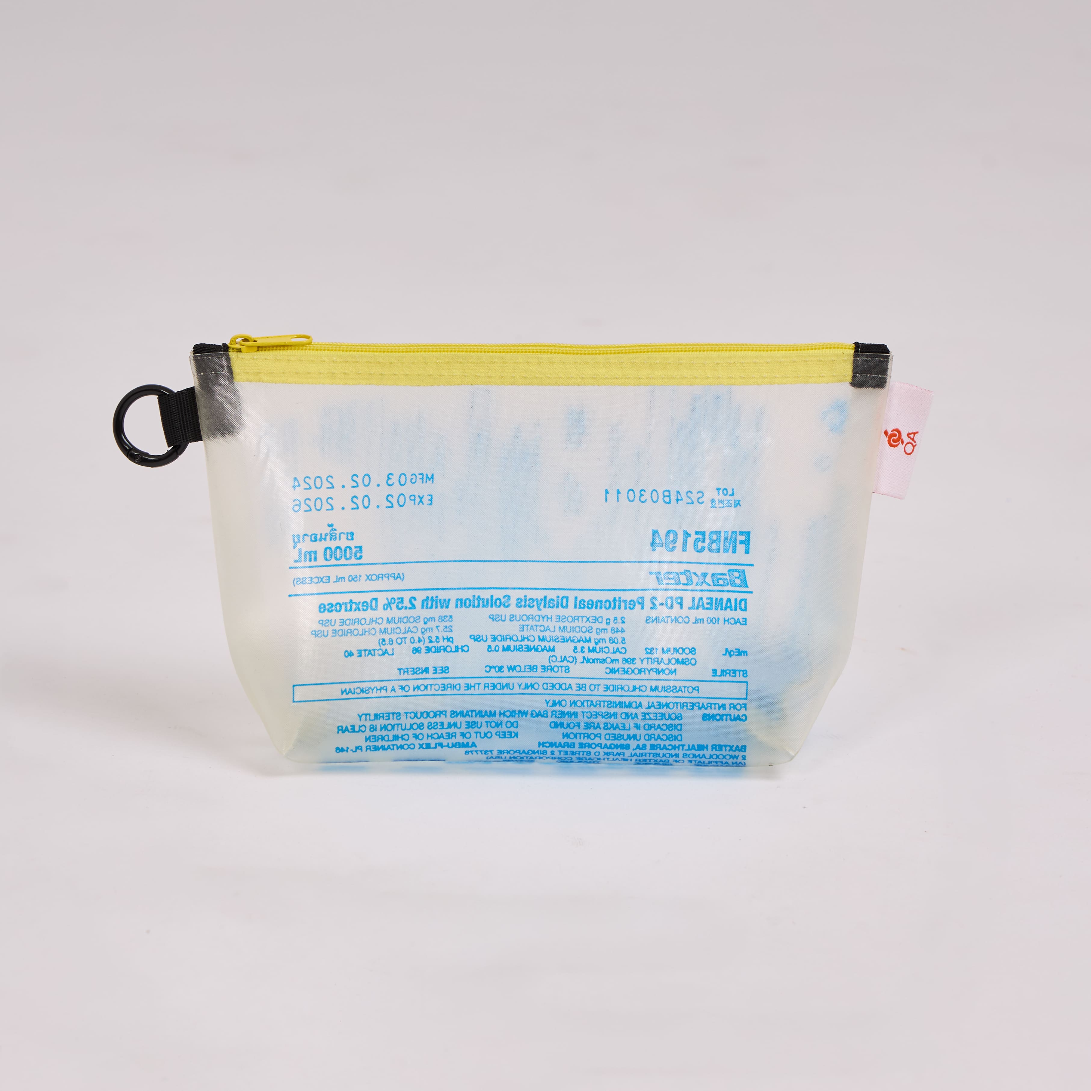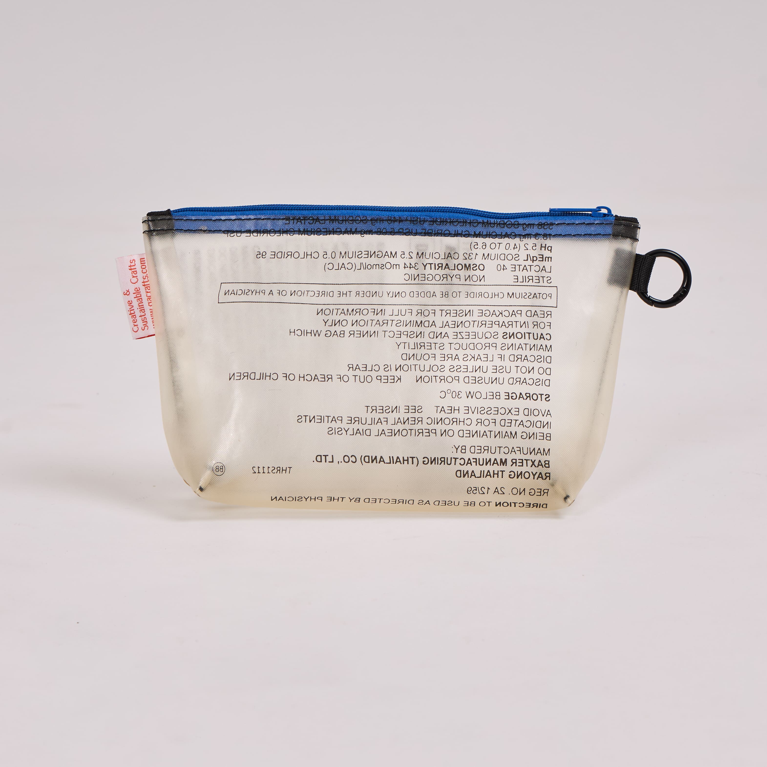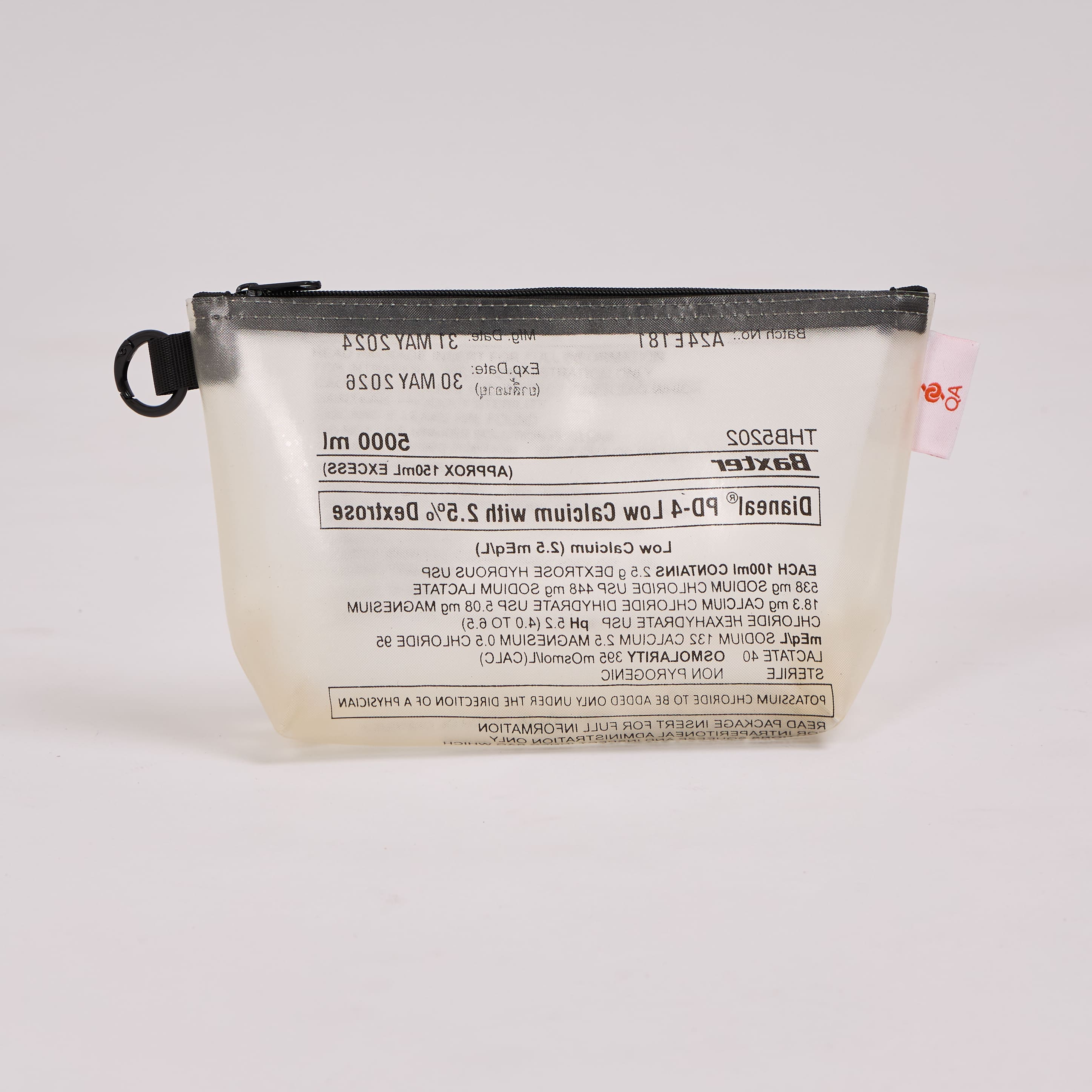 - Crafted from 1 upcycled dialysis bag; each piece has a unique pattern.