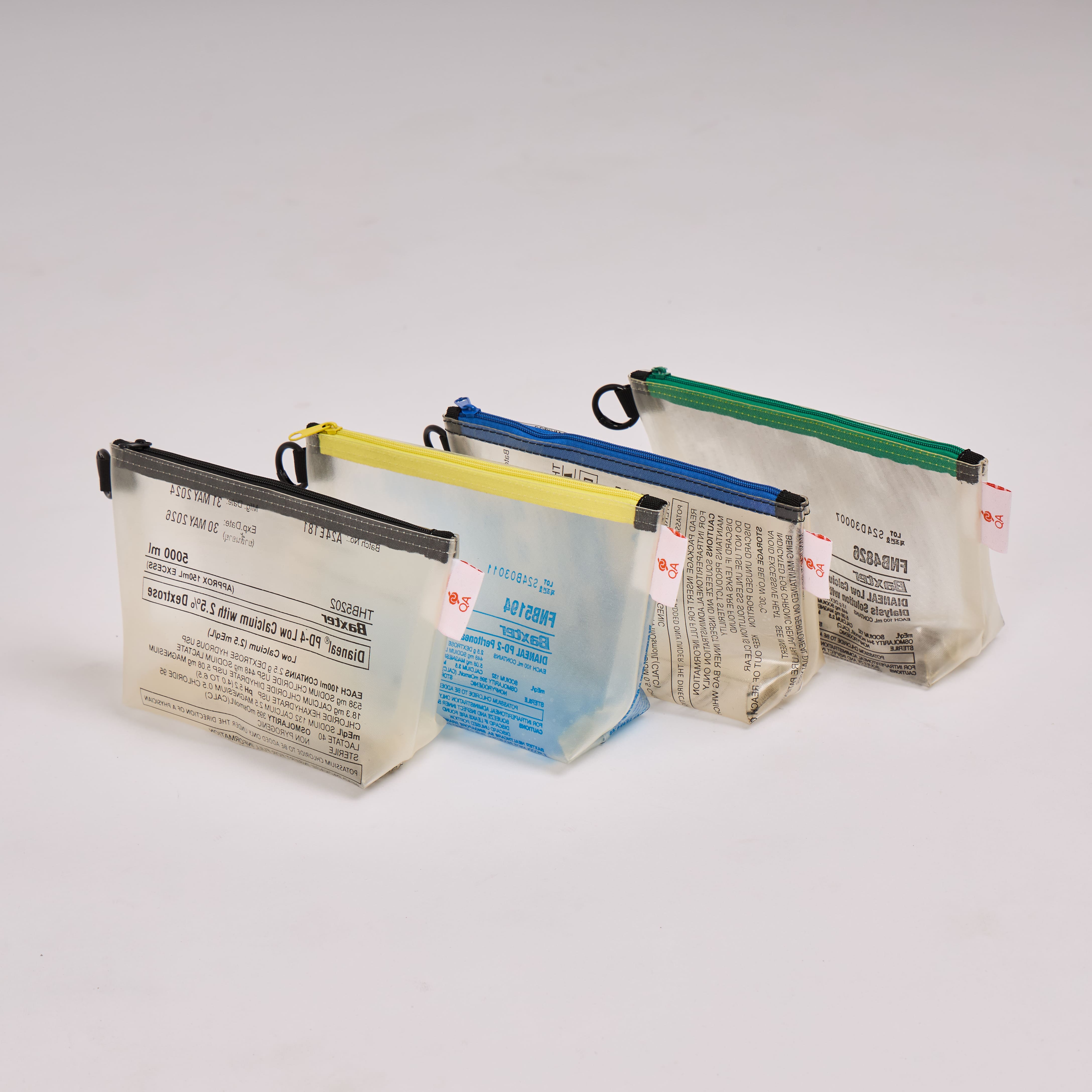 An eco-friendly and socially responsible pouch crafted from 1 upcycled dialysis bag. Perfect for keeping your small essentials.