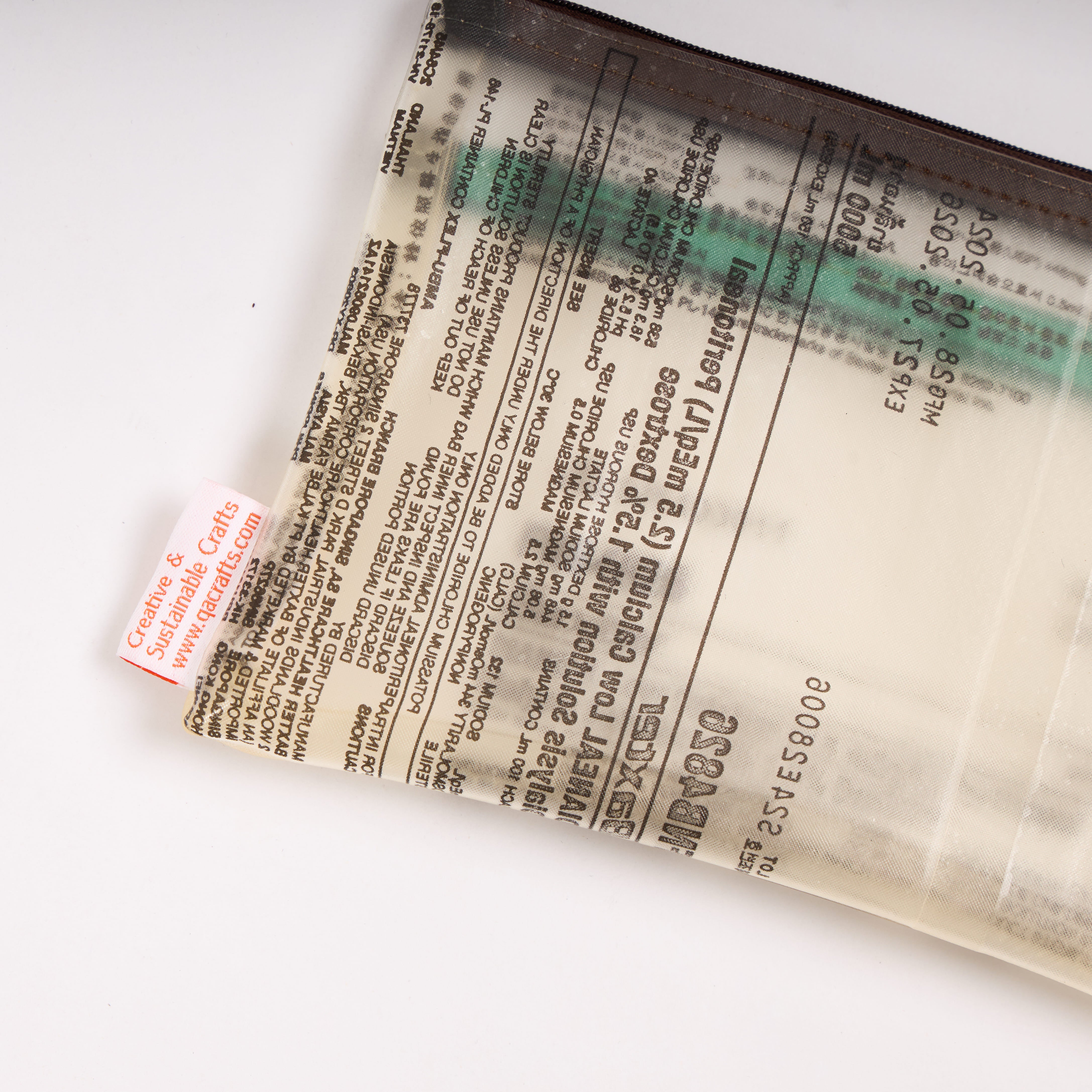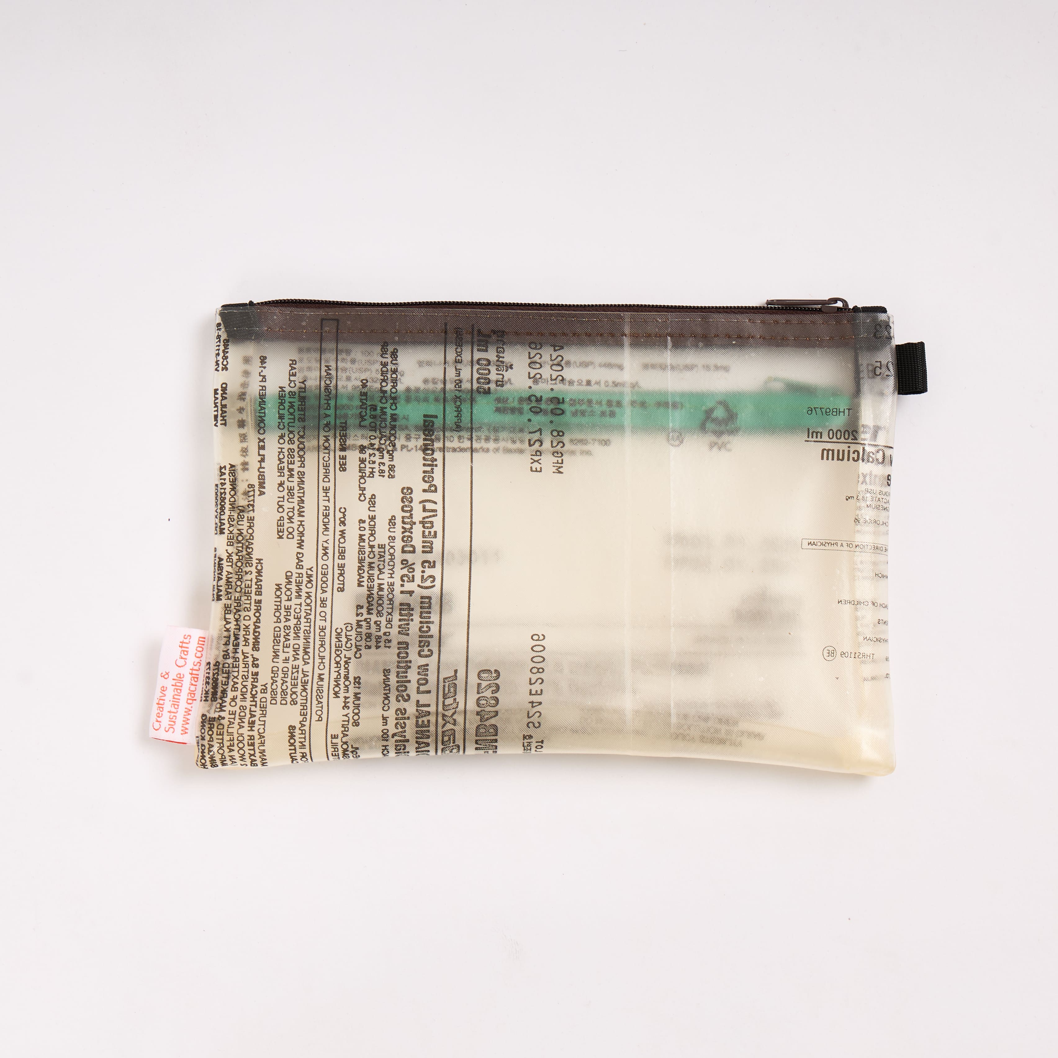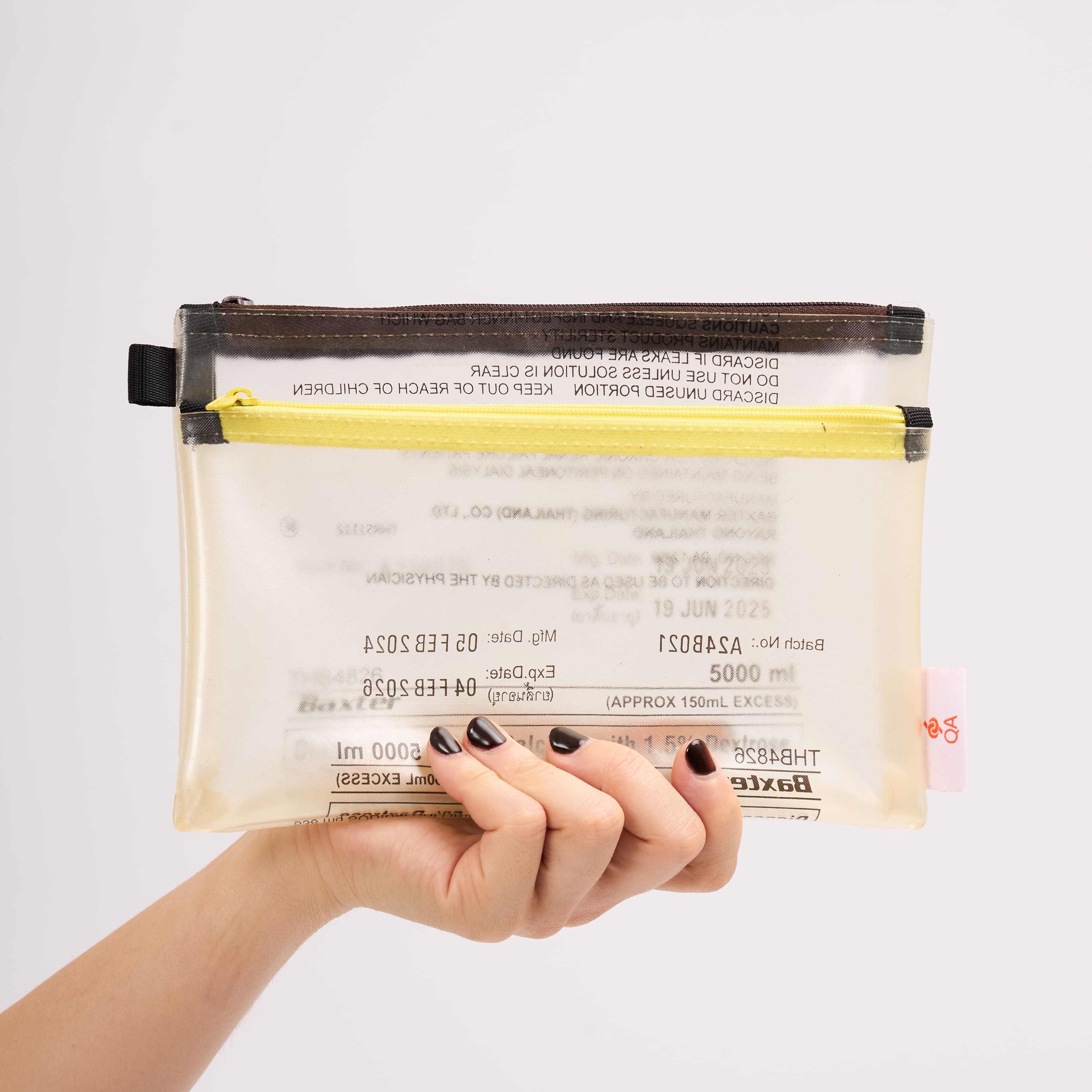 - Crafted from 1.5 upcycled dialysis bags; each piece has a unique pattern.