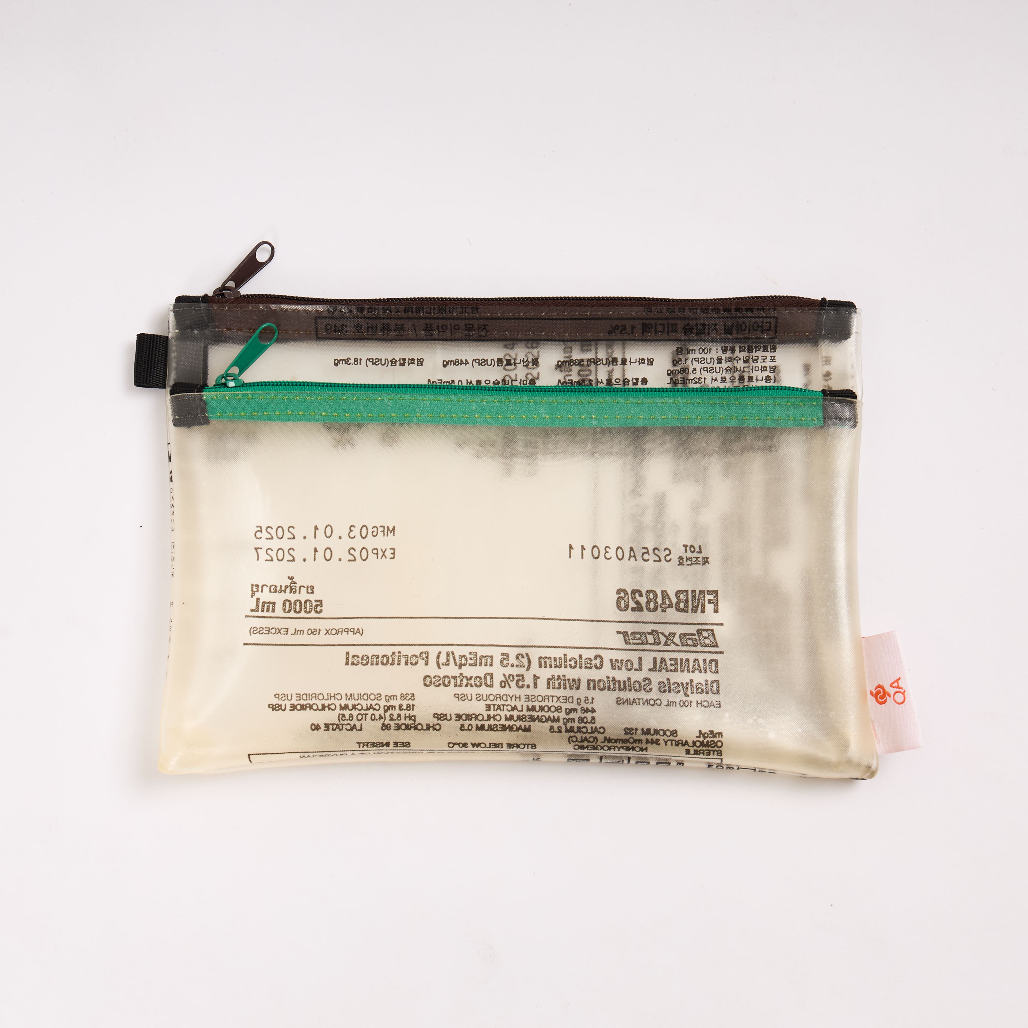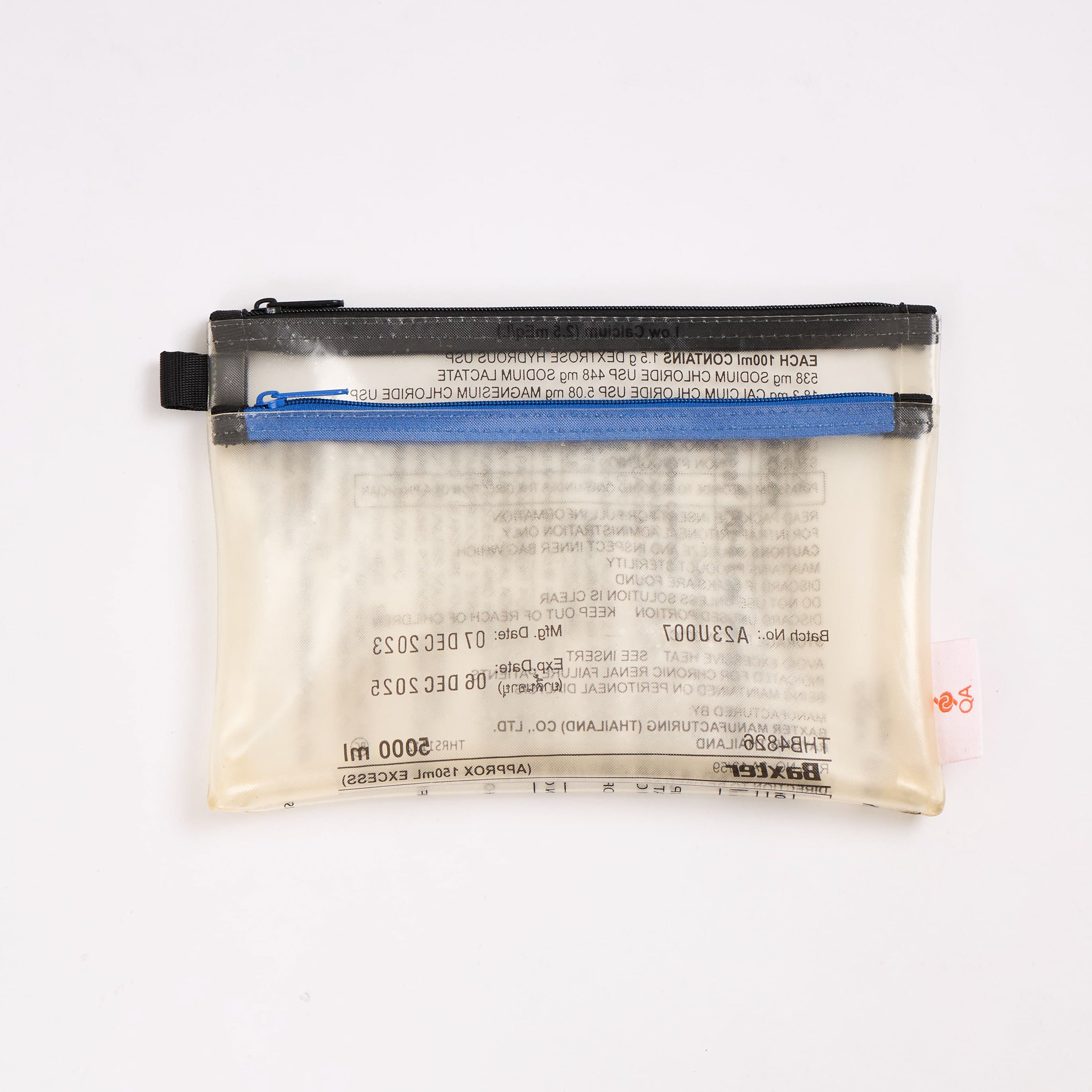 We purchase and use only the top pouches of dialysis bags, which originally contained mainly water and dextrose solution. These pouches are sterile, clean, and never come into contact with the patient’s body fluids. -