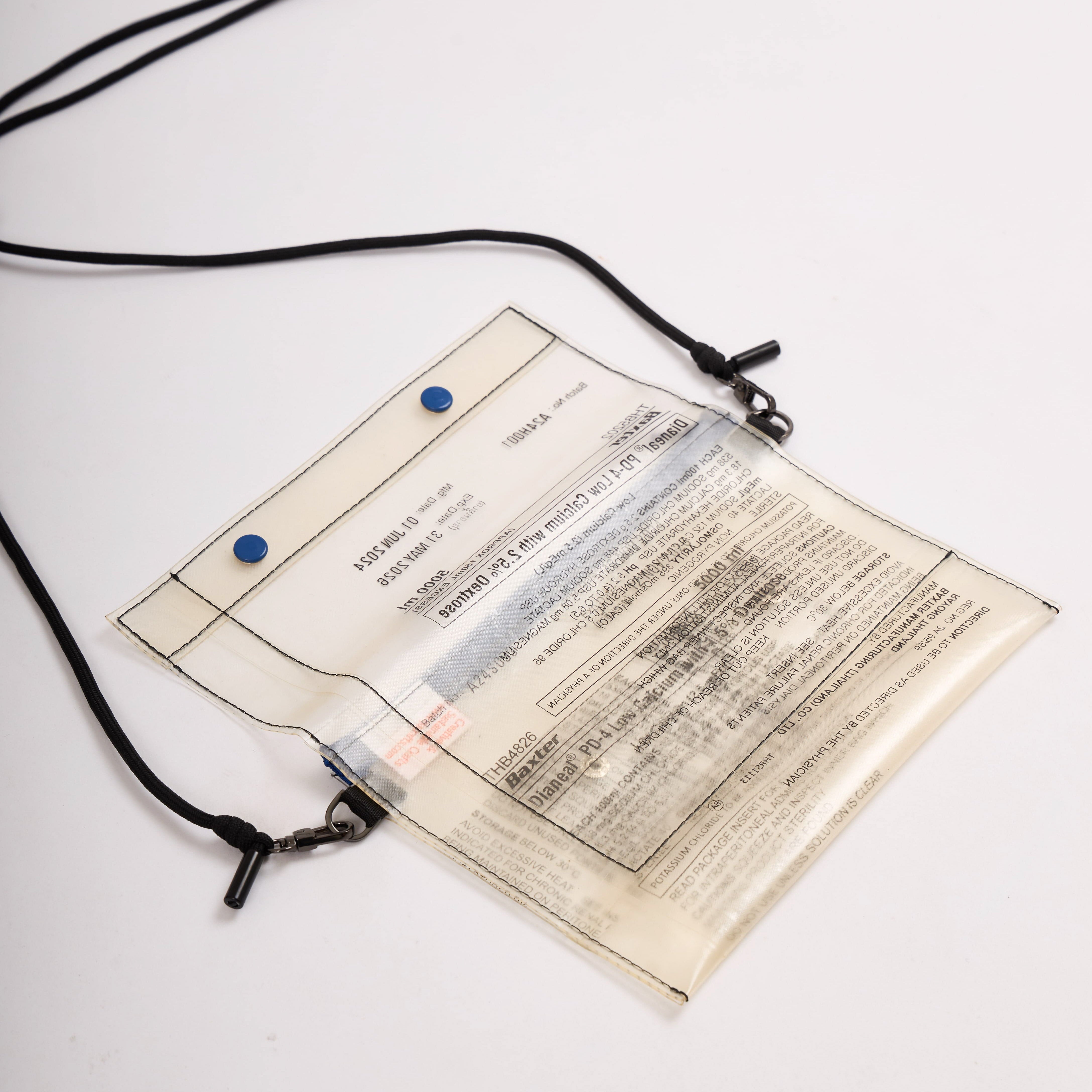 We purchase and use only the top pouches of dialysis bags, which originally contained mainly water and dextrose solution. These pouches are sterile, clean, and never come into contact with the patient’s body fluids. -